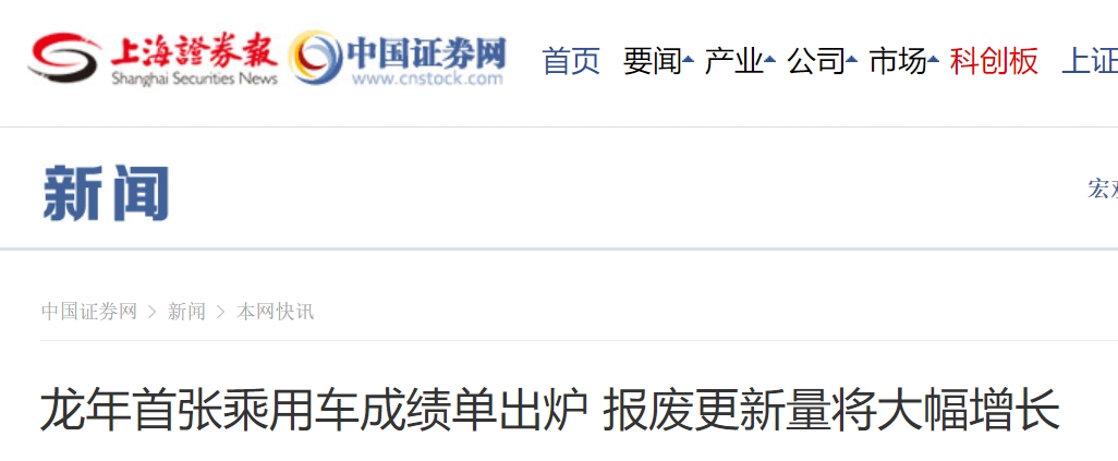 龍年首張乘用車(chē)成績(jì)單出爐報廢更新量將大幅增長(cháng)