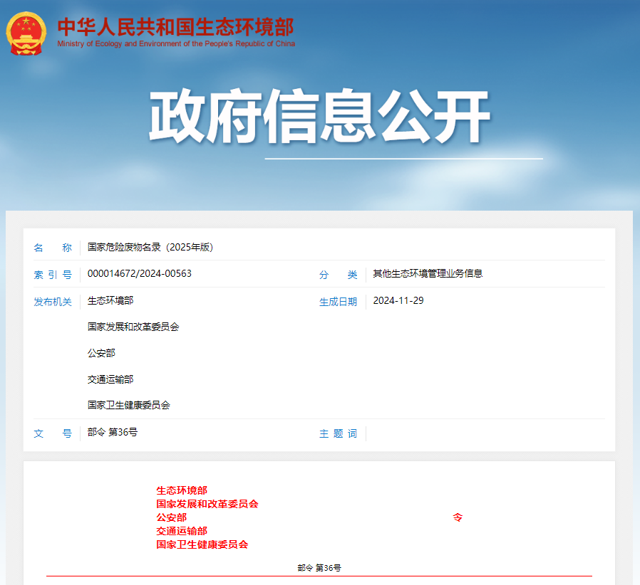 國家危險廢物名錄(2025年版)審議通過(guò)