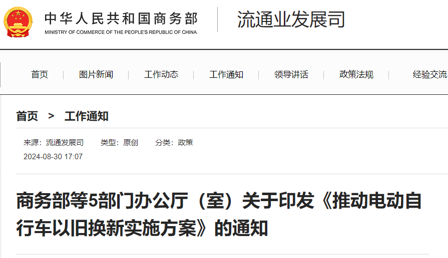 商務(wù)部等部門(mén):加大電動(dòng)自行車(chē)以舊換新惠民支持力度(附一圖看懂)