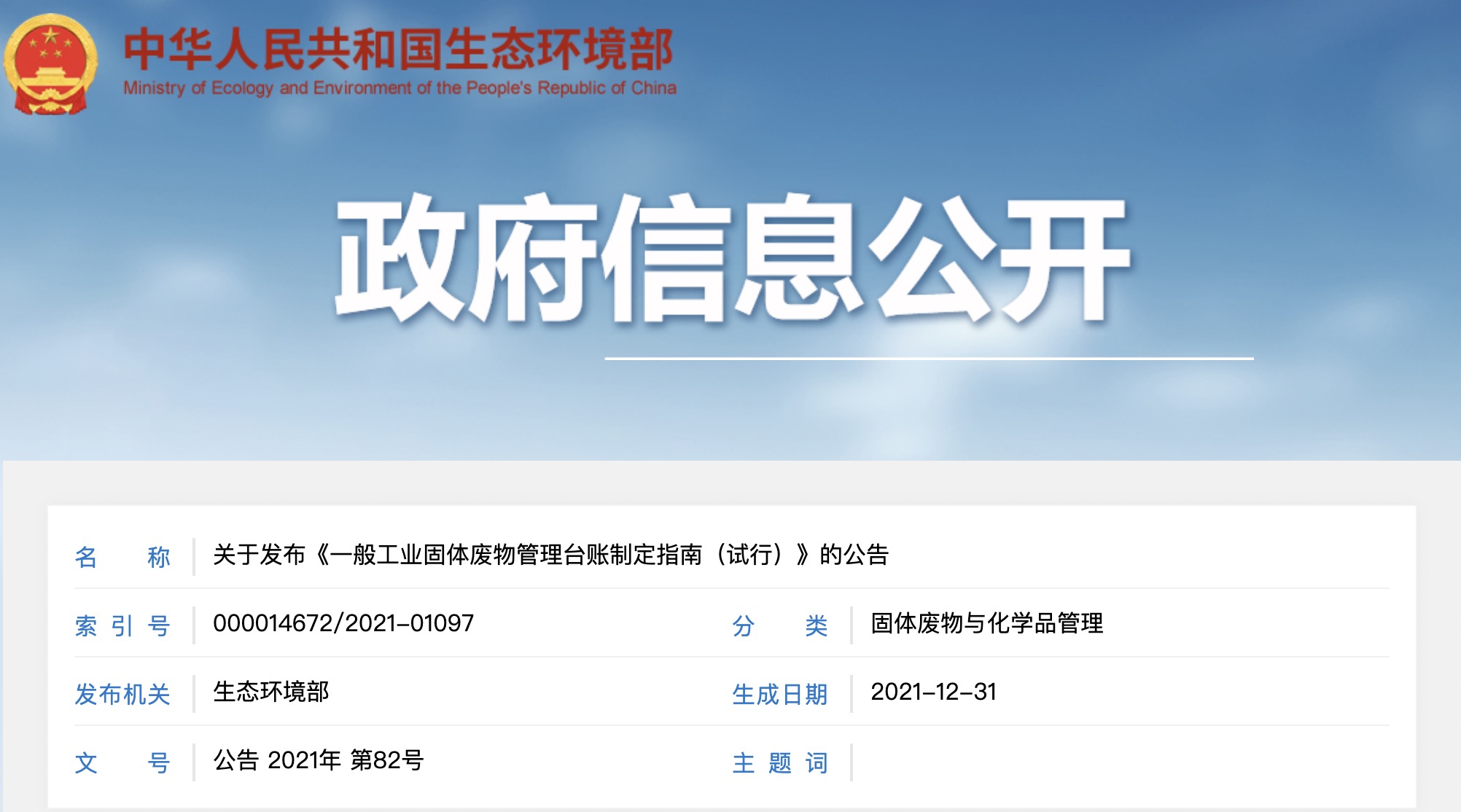 關(guān)于發(fā)布《一般工業(yè)固體廢物管理臺賬制定指南(試行)》的公告為落實(shí)《中華人民共和國固體廢物污染環(huán)境防治法》第三十六條關(guān)于建立工業(yè)固體廢物管理臺賬的有關(guān)規定,指導產(chǎn)...