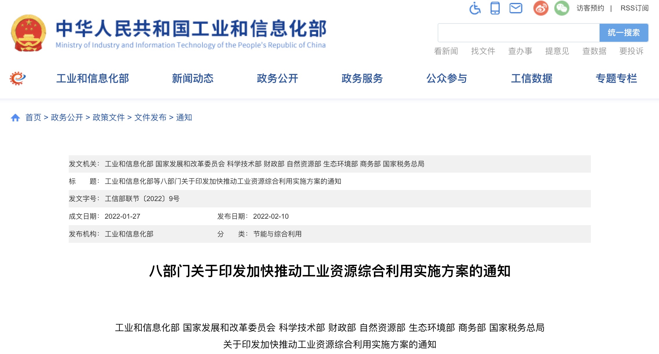 關(guān)于印發(fā)加快推動(dòng)工業(yè)資源綜合利用實(shí)施方案的通知工業(yè)和信息化部國家發(fā)展和改革委員會(huì )科學(xué)技術(shù)部財政部自然資源部生態(tài)環(huán)境部商務(wù)部國家稅務(wù)總局關(guān)于印發(fā)加快推動(dòng)工業(yè)資源綜...