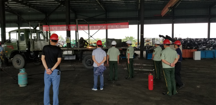 隨后在拆解車(chē)間,扶德才處長(cháng)一行就此次的武警安徽總隊退役報廢車(chē)輛現場(chǎng)拆解進(jìn)行監督,過(guò)程中不斷與皖中公司相關(guān)陪同人員進(jìn)行交流,對皖中公司拆解現場(chǎng)的安全防范工作給予高度評價(jià)。