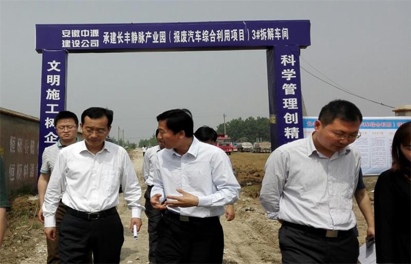 5月7日,合肥市長(cháng)豐縣委書(shū)記許華在集團副總裁何學(xué)海的陪同下,深入中國玉成·合肥皖中報廢汽車(chē)回收有限責任公司調研,在實(shí)地察看了玉成有限公司投資實(shí)施運作的長(cháng)豐靜脈產(chǎn)業(yè)園(報廢汽車(chē)綜合利用項目)建設工地,并認真聽(tīng)取了副總裁何學(xué)海及晥中公司相關(guān)負責人的工作匯報后,許華指出,長(cháng)豐靜脈產(chǎn)業(yè)園(報廢汽車(chē)綜合利用項目)是資源回收利用、產(chǎn)業(yè)鏈延伸的亮點(diǎn),具有重要示范意義,大力發(fā)展再生資源產(chǎn)業(yè),變廢為寶,開(kāi)創(chuàng )了資源節約的可行路徑,激發(fā)了經(jīng)濟增長(cháng)的持續動(dòng)力,要求項目建設單位要加快建設速度,推動(dòng)項目順利建成投產(chǎn)。